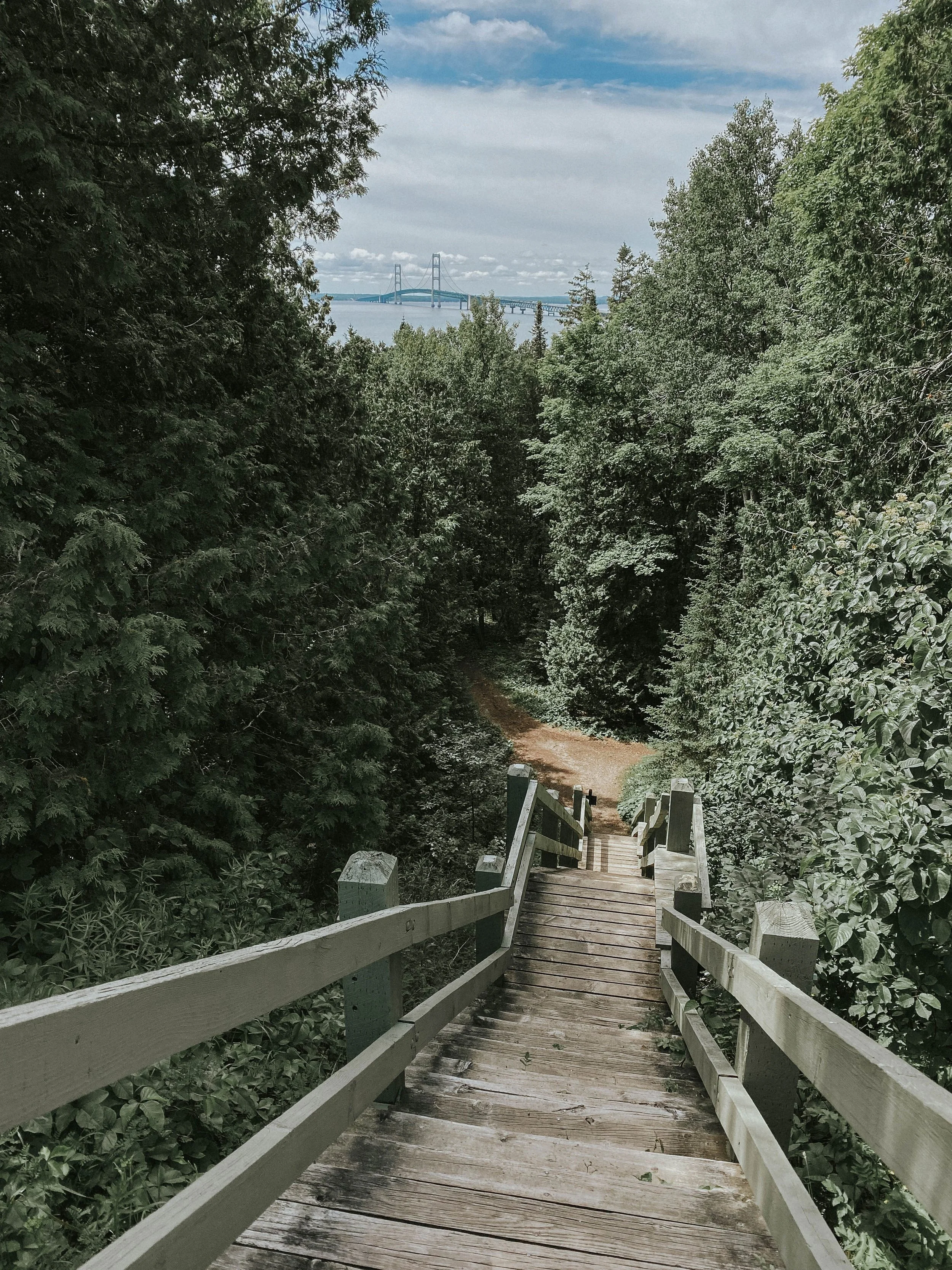 My second day in town… I ended up working from the St. Ignace Library all day (which is so dope), because my hotel internet was trash. And then during the evening, I headed up to Castle Rock! It’s been years since I’ve climbed up here! It’s considered to be one of the oldest lookout views near St. Ignace and was known as “Pontiac’s Lookout” by the Ojibwa Tribe. It’s 195 feet above water level, offering scenic views for up to 20 miles… including Mackinac Island! You can check out the viewing binoculars at the top too for an even better view. It’s $1 to climb to the top, and you walk through a gift shop first, which is one of my favorite things to do in touristy towns. I was huffing and puffing by the time I got to the top (quite a lot of stairs!) but it’s such a pretty view and definitely worth it.
