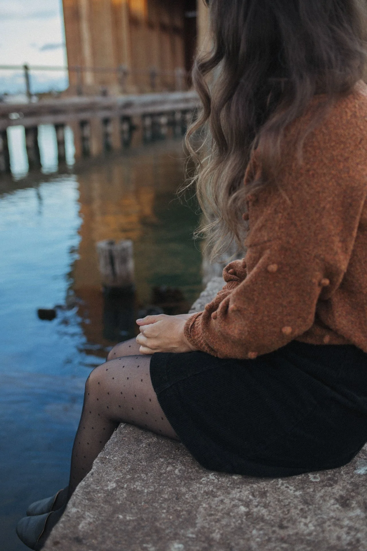 Happy October! Popping in with another quick outfit post… from the first day of my favorite month of the year. October hits… and so does my collection of burnt orange sweaters. 😆 And it’s finally feeling like more autumn weather here in the Upper Peninsula, although, our fall colors are quite behind schedule! But it was nice to transition a bit from summer to fall this week. So much of my wardrobe right now… is older! And I really enjoy that, but finding links for you guys to shop the items is a little tricky, but I did link some similar items below. But just a quick one today, with a sort of “old-school” Tieka outfit post. Still rocking the polka dot tights, however many years later!
