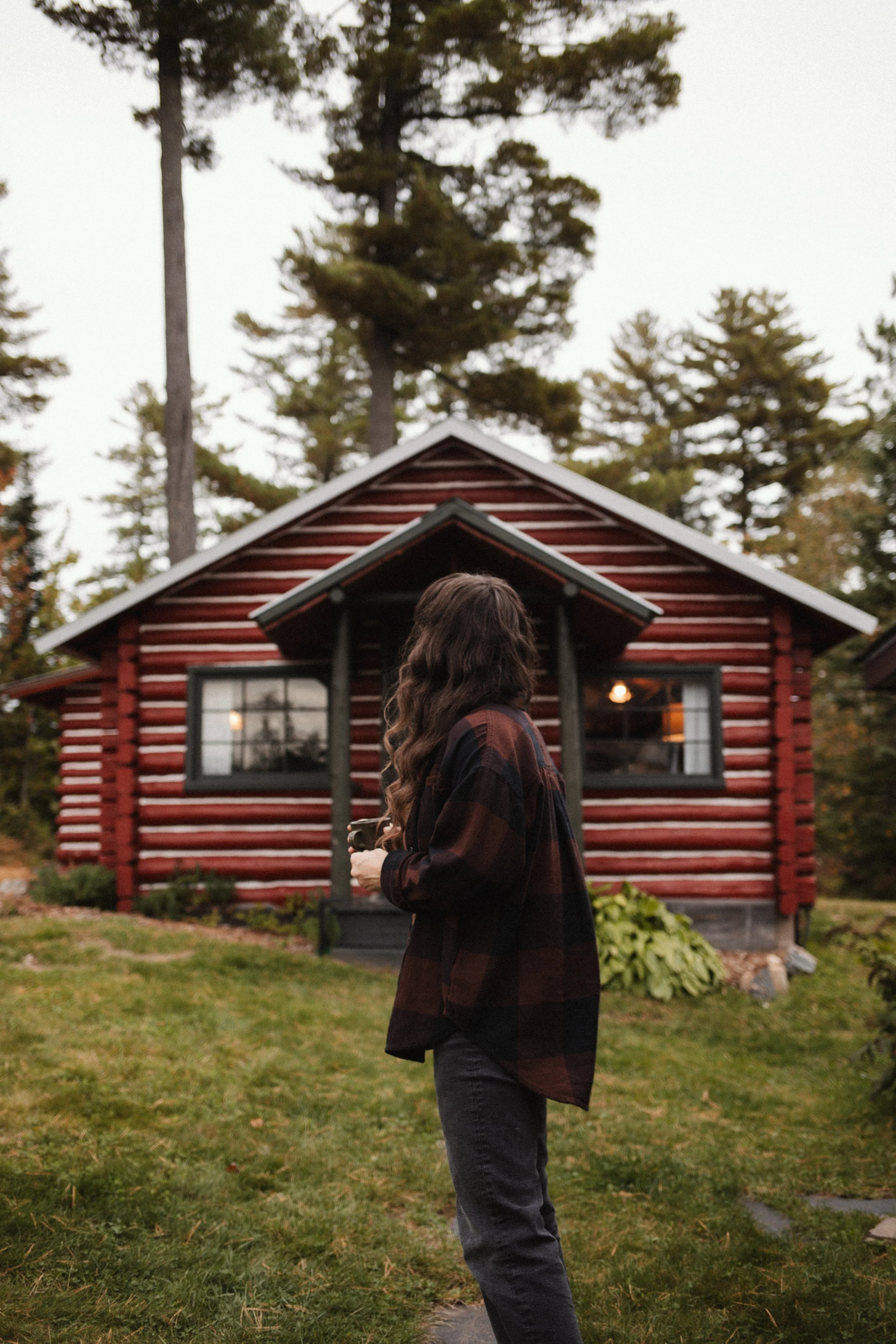If you walk down the hill just steps from the cabin, you can take in the views of Juncob Lake on their dock, curl up in a blanket, sit by the fire, read, gather firewood, roast s’mores, and just breathe. It’s the kind of quiet you can only get in a place like this, the crackle of the fire, the rustling of the leaves and trees, and time just slows down. I love noticing the small details… like the reflection of the trees in the water, the overcast golden hour peeking through, the smell of woodsmoke, just… simple, peaceful and everything you’d hope for in a Northwoods escape.